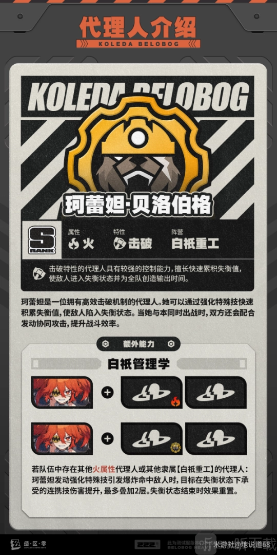 特色:尽管柯蕾妲定位为击破,但与特定搭配组合后,能展现出颇为强劲的直伤能力。不过,操作柯蕾妲对手法有一定要求,这使得角色在输出表现上,上限与下限差距较为明显。