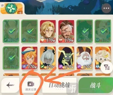 7、推图小妙招:在跑图或者挂机关卡遇到推不过去的情况时,可点开通关记录(参考下图),其中存有他人过关的视频,能直接一键“抄作业”(不过该功能要在推完前几十关后才会解锁)。