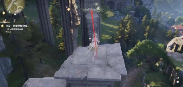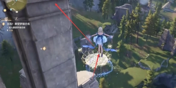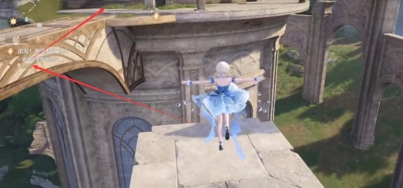 1. 按照任务指引,首先抵达图示位置,接着长按空格键跳到柱子上。