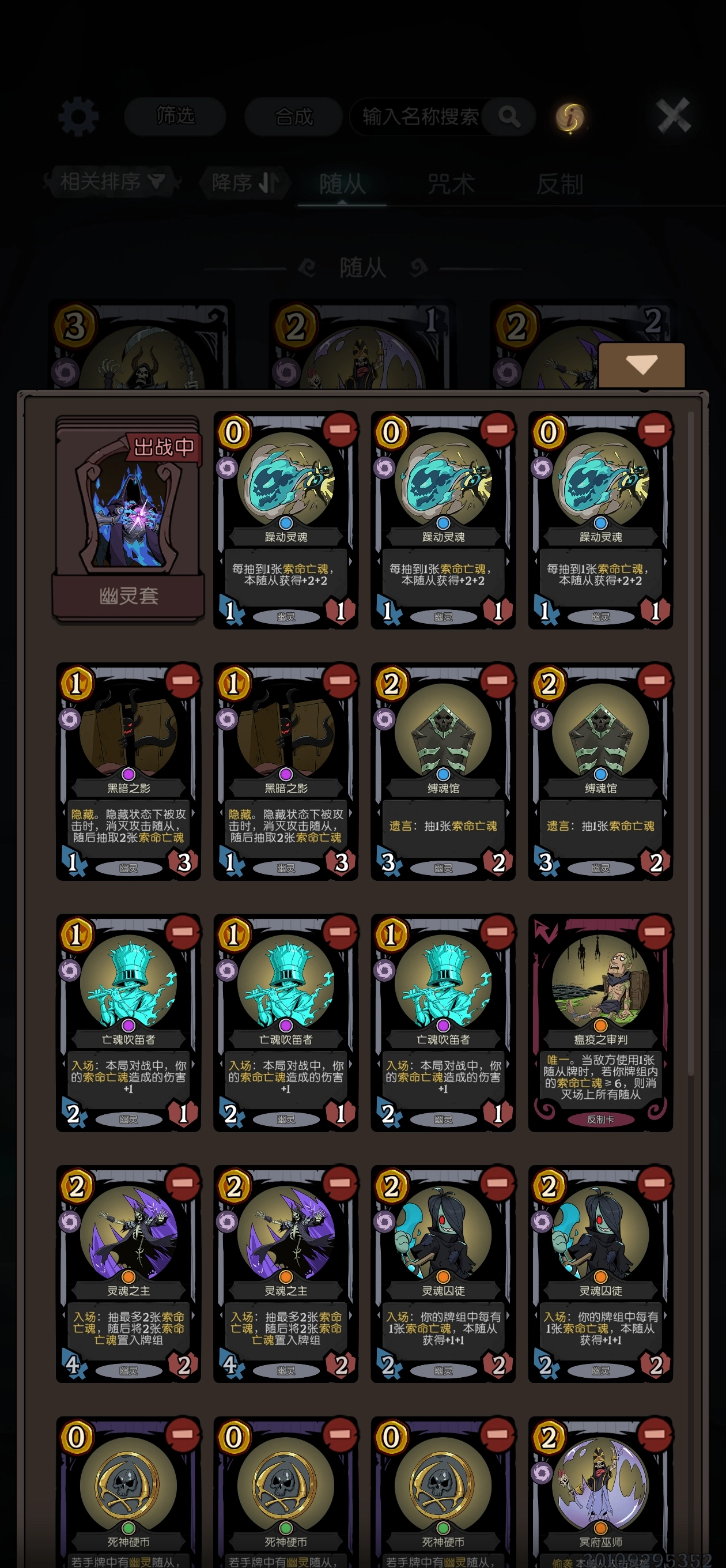 在幽灵套的前期阶段,往牌库中刷入亡魂。借助囚徒、躁动灵魂以及灵魂之主的组合连招,并且通过拉亡魂来打出伤害。