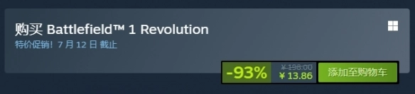 这款由EA制作的大战场射击游戏在在在次的迎来了属于他的新史低,原价198现价只需要13.86元即可畅玩史诗级大战场,真的是被背刺麻了,但是战地1绝对是大战场射击类的不二选择。