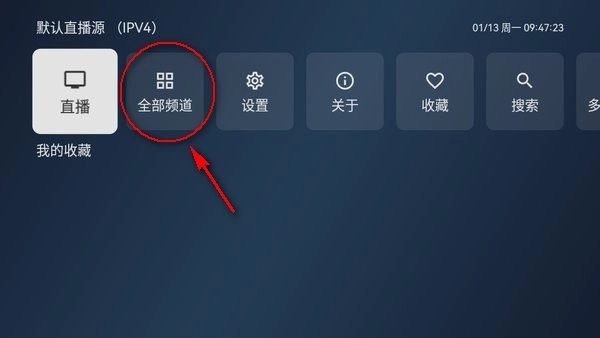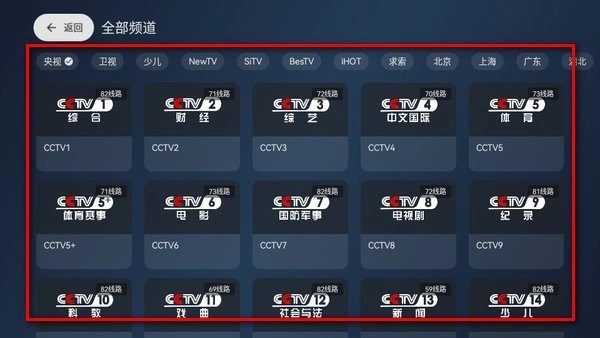 随后,软件便会为你展示出全部频道,点击相应频道就能观看。