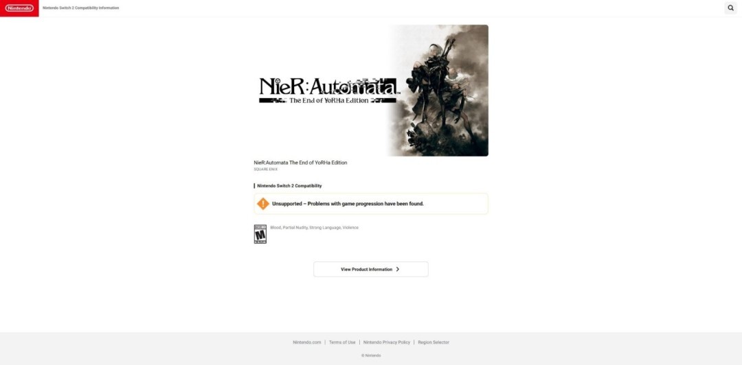 比如,2018年推出的《Nintendo Labo》系列在网站上标注为“可运行”,不过因为该系列配备的纸板外设仅能适配原版Switch主机,所以部分功能在Switch 2上没办法获得完整体验。还有像2022年10月登陆Switch平台的《尼尔:机械纪元》这类作品,由于存在游戏进度方面的问题,当前被标记为“不兼容”。