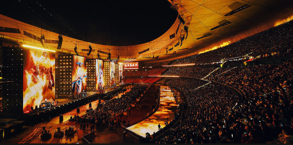 首先,这表明移动游戏因接入便捷且内容生态多元,正吸引着规模前所未有的观众群体。《王者荣耀》拥有2.6亿月活跃用户,游戏网络覆盖全球200多个国家和地区。中国作为它的主要市场,这款游戏有着现象级的流行程度,这也是它能在国家体育场创下纪录的关键因素。