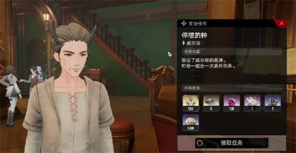 随后,玩家与威尔斯完成对话后,就能打开支线任务的接取界面。由于此前已答应威尔斯的邀请,同意和他一同执行委托任务,所以此时点击接取任务,便可启动任务流程。不过在任务正式开启前,会先进行一次难度判定——只要玩家的共情数值鉴定通过,就能降低该任务的难度。