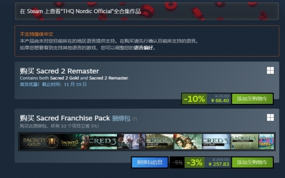 PC平台(Steam):您可直接前往《圣域2:堕落天使》重制版的Steam商店页面完成购买与下载操作。