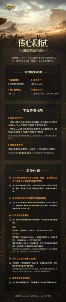 腾讯旗下的手游《怪物猎人:旅人》即将推出「传心测试」这一限时体验活动。官方近期公布了测试下载指南与相关FAQ,以便已获取资格的玩家提前做好准备。