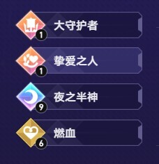 1大守护者、1挚爱之人、9夜之半神、6燃血