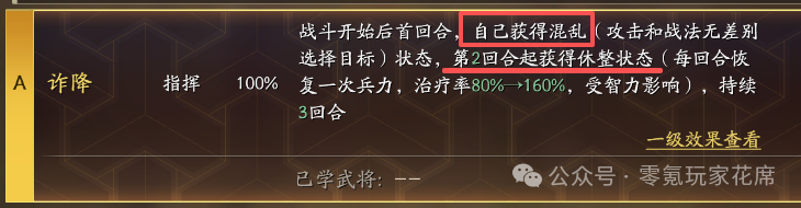 这样一来,第二回合陈翊率先行动,此时张飞的混乱状态尚未解除,陈翊仍能指挥张飞打出一次全体伤害。