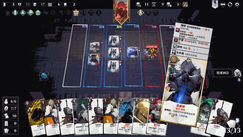 被称作防御卡的站场随从牌,跳出了“数值加成”的传统设计框架,转而以“召唤实体军队”为核心思路。像常规卡牌“长矛兵”,每次入场都会押送一名死囚犯,这张牌在战场部署后,不仅能作为前排阻挡敌人,还能触发其他卡牌的连锁效果;还有些防御卡具备“奶妈”功能,入场时可为整排卡牌增加血量并提供减伤。起初确实会颠覆大家对攻击卡和防御卡的固有认知,但熟悉这种独特设定后,游戏乐趣便会愈发浓厚,让人沉浸其中。