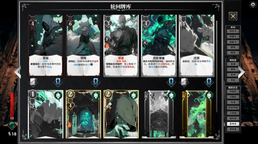 最让我印象深刻的,还是与各大派系深度绑定的技能卡——它堪称左右战局走向的核心变量,像“立即禁锢敌方单位”“立即触发回合结束效果”“立即召唤四名死刑犯”这类功能都包含其中,能为处于下风的对局创造逆转局势的可能。比如轮回派系的传说级技能卡“皆空”“空”“道”“相”,这些带着禅意与佛系色彩的主题卡牌,和轮回派系里那些光头和尚形象的角色适配度极高,从中也能体会到设计团队在卡牌创作上的巧妙心思。
