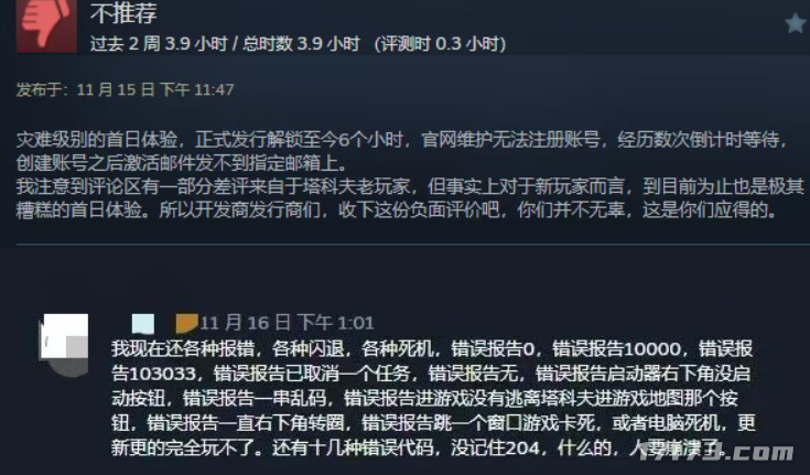 这场灾难性的首发,迅速反映在玩家评价上。