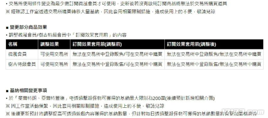 玩家必须付费开通会员才能使用交易行,且每个账号可通过野外打怪获取的金币量也有了上限,多个珍贵道具的爆率下调。
