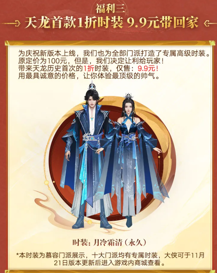 首先是首批9.9元的时装,全门派都有,简直白送。