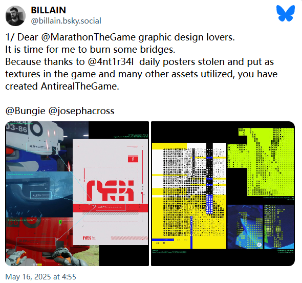 此次纠纷源于今年5月,当时Hook公开指责Bungie在其新游戏《马拉松》的内部测试版中,未经许可使用了她2017年创作的艺术作品作为游戏贴图素材。她表示,尽管游戏整体风格与个人作品相近是可以理解的,但直接照搬具体设计却不署名的行为实在难以接受。