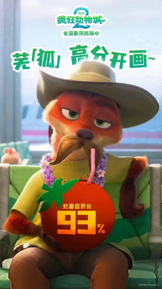 此外,《疯狂动物城2》定于当地时间11月26日在北美地区同步上映,影片开画便收获了93%的烂番茄新鲜度高分。
