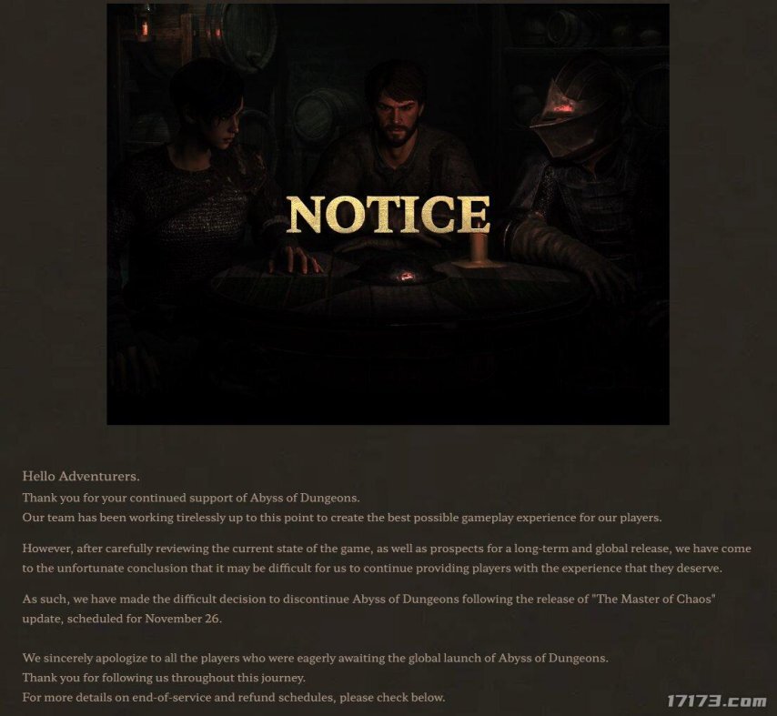 近日,KRAFTON经由《深渊地牢》的官方网站发布公告,宣布该游戏即将终止运营。关于停止运营的缘由,官方说明道:“在对游戏目前的运营状况以及全球发行的前景展开细致深入的研讨后,我们认为难以继续为玩家提供达到其期望的游戏体验。”游戏会在11月26日推出“混沌大师”版本更新之后,正式开启停运相关流程,而游戏内的付费功能此刻已经停止使用。
