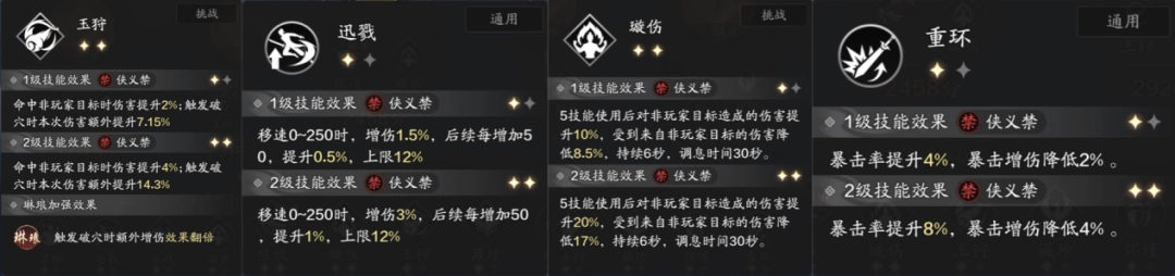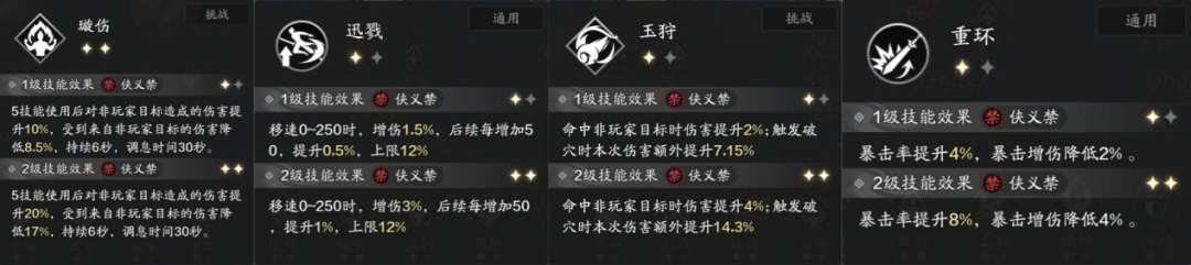 该方案将“璇伤”技能提升到了二级,旨在释放五技能后打出瞬间爆发伤害的同时,还能保证迅戮,玉狩的基本增伤。
