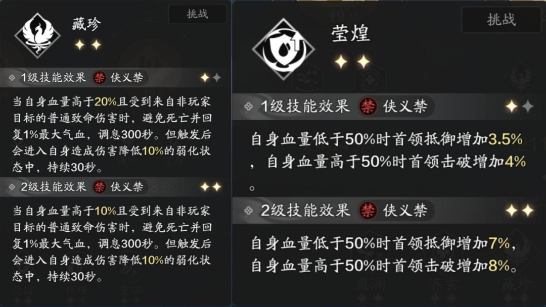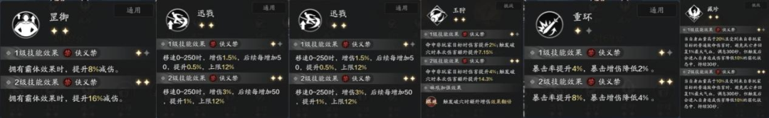 这一套拥有“罡御”技能的减伤,也拥有“迅戮”、“玉狩”的基本增伤,“重环”的基本暴击提高输出,还有“藏珍”的保命效果。
