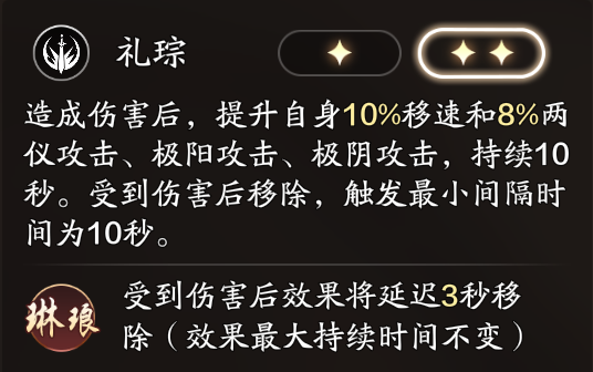 木桩方案的核心观点是必须带两个礼琮刻玉,因为礼琮的技能效果是增加两仪攻击、极阳攻击、极阴攻击,这是提高PVE伤害的关键属性。