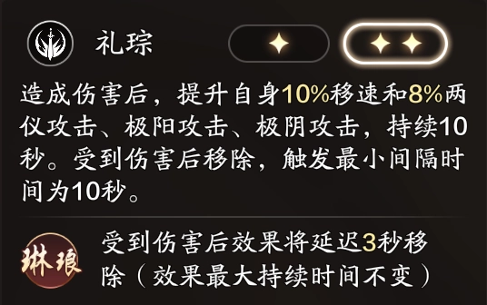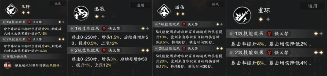 这个方案优先把玉狩技能点到二级,提升了“玉狩”的增伤效果。和方案一相比,整体输出会更稳定,同时也能确保“迅戮”的基础增伤,以及“璇伤”的爆发能力。