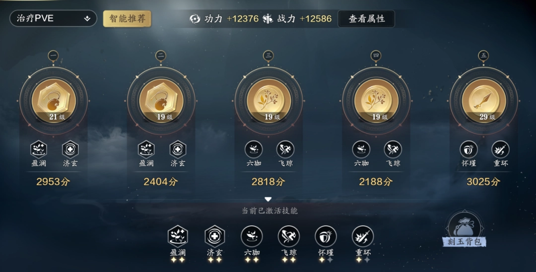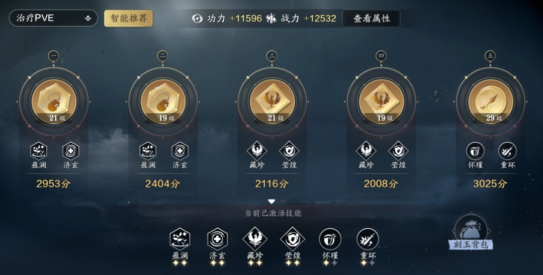 (2)平稳输出方案:“罡御|迅戮”+“琅伐|璇伤”+“玉狩|藏珍”+“玉狩|藏珍”+“怀瑾|重环”