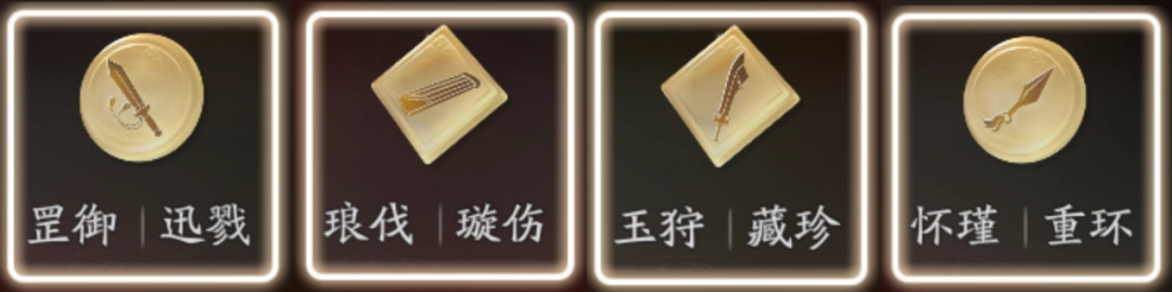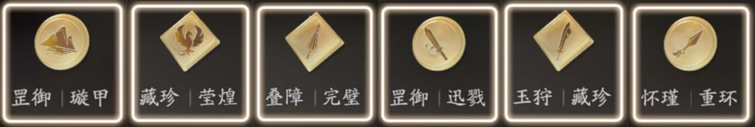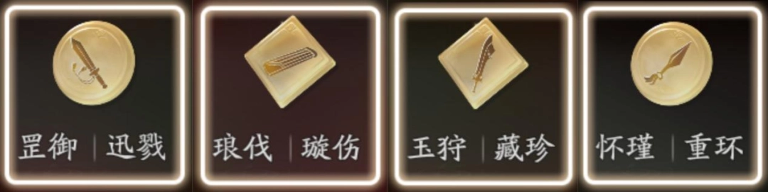 (2)防御+输出方案:“罡御|迅戮”+“罡御|迅戮”+“玉狩|藏珍”+”玉狩|藏珍”+”怀瑾|重环”