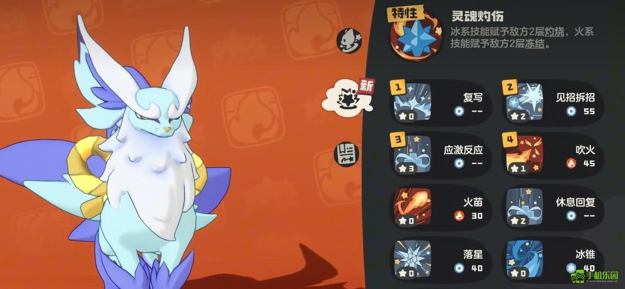 再来瞧瞧它的特性,灵魂灼烧这一特性确实挺有创意。使用冰系技能攻击对手时,会给对方叠加灼烧效果;而使用火系技能时,又能叠加冰冻效果。这种交叉叠加的机制,使得尖嘴狐仙的持续输出能力得到了显著提升。敌人身上的负面状态越丰富,所承受的伤害自然也就越高,战斗起来会愈发轻松。