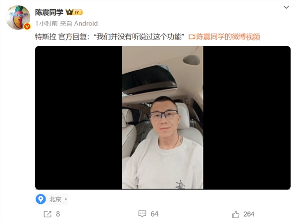 近日有自媒体博主发布视频对特斯拉大加赞赏,称“有这么好的功能却不主动宣传”。