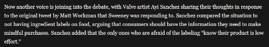 据gamerant消息,Valve的美术设计师Ayi Sanchez在对原推文进行回应时阐述了个人看法。他把这件事比作“食品不标注成分”,觉得消费者理应有充足的信息来做出判断。Sanchez还指出,只有那些心里有鬼的开发者才会惧怕标注,毕竟他们清楚自己的产品是投入很低的东西。