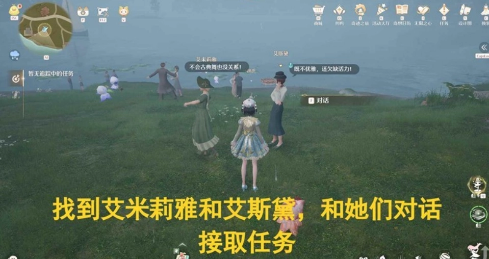 建议选择湖畔街区的舞台,抵达后点击互动键进行跳舞,之后退出舞台。返回去与艾斯黛和艾米莉雅交谈,即可完成任务。
