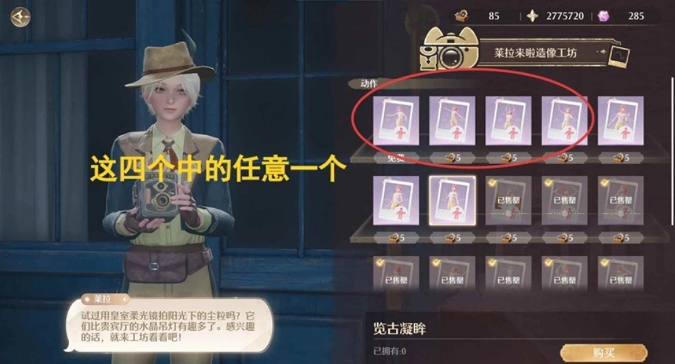 接下来,去大许愿树广场找莱拉,从以下四种舞蹈服装里选一款购买。