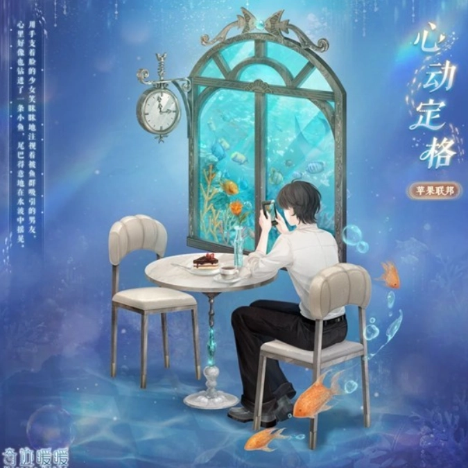 【心动定格】包含全新妆容“蜜色盈盈”,以及精美人模摆件“心跳留影”,还有精美可移动摆件“游鱼璃窗”“浪漫茶歇”“鱼游予梦”。