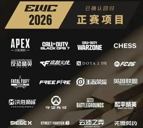 2026年电竞世界杯(Esports World Cup,简称EWC)官方正式公布了20个正赛项目名单,中国游戏厂商沐瞳科技旗下的《决胜巅峰》再次入选,这也是该游戏连续第三届登上榜单。下面是小编为玩家们整理的详细资讯,感兴趣的玩家可以前来查看!