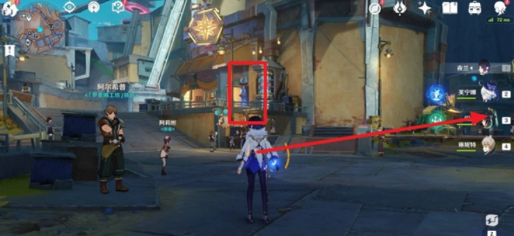 我们可以去旁边激活一个传送锚点。激活完成后,接着沿着右侧的道路前进。