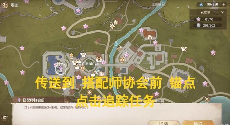 在传送至搭配师协会前的锚点时,先打开地图,然后把“搭配师协会前”选定为传送目标。