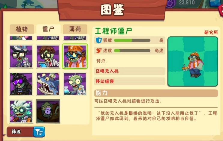 实验部门僵尸强度: 中特点:投掷药剂,削弱植物属性(如攻击力/攻速)。
