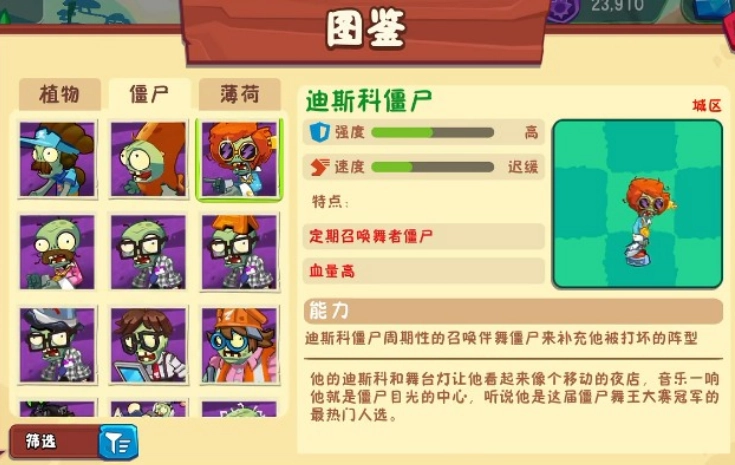 迪斯科僵尸:血量较高,会定期召唤舞者僵尸,移动速度缓慢。舞者僵尸:强度普通,在群体压制方面表现突出。应对策略:集中攻击火力,优先处理迪斯科僵尸,避免其不断召唤增援。
