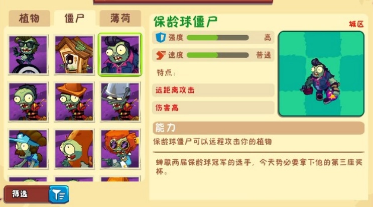 特勤僵尸强度:高速度:中特点:远程攻击,能投掷手雷破坏植物。应对方法:远程拦截,使用控制类植物限制其投掷节奏。僵尸十四