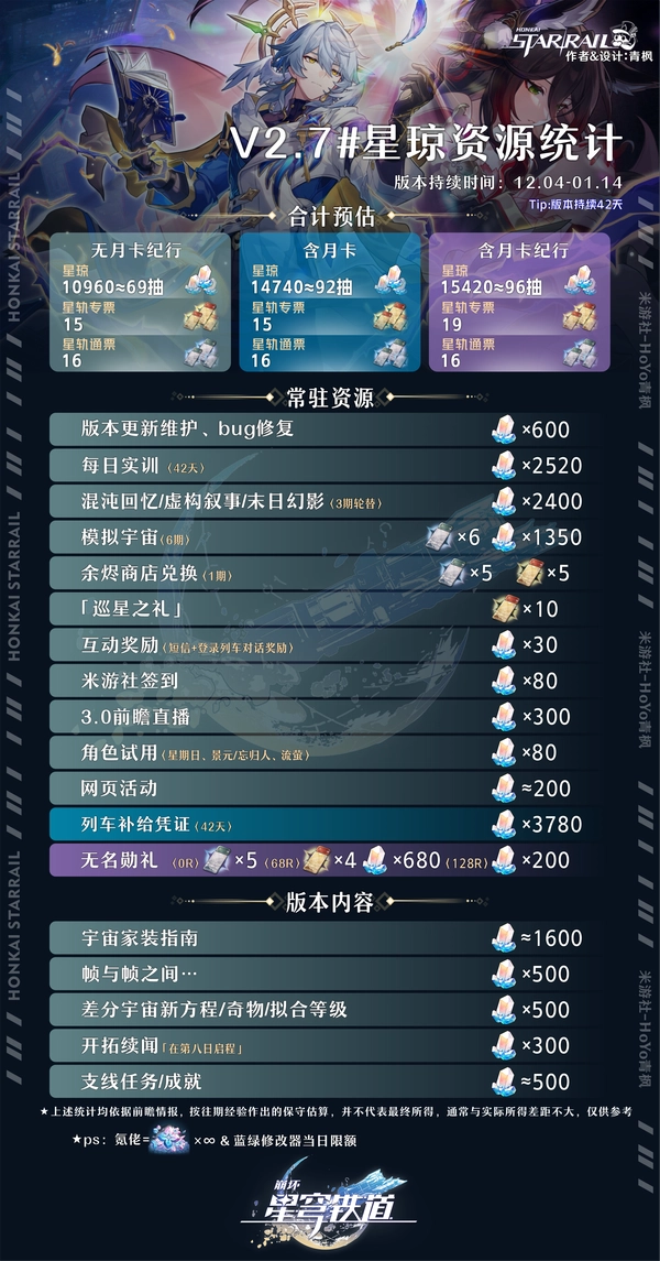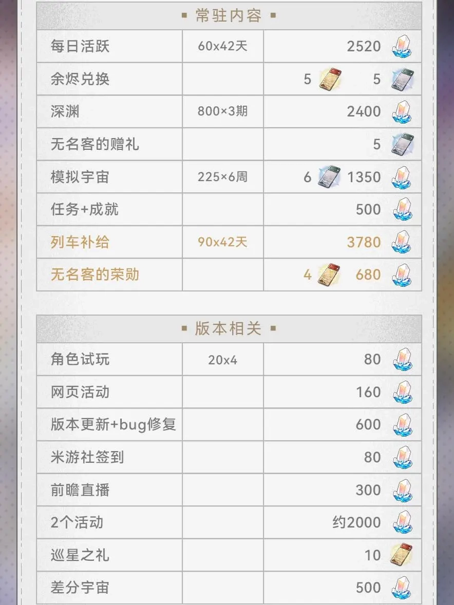 剧情推进:在主线与支线剧情逐步展开的过程中,玩家能够获取星琼奖励。经估算,本版本周期内大约可获得2000星琼。