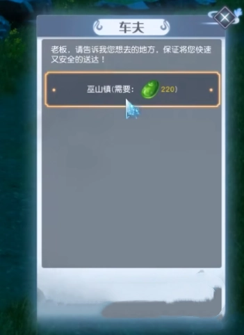 在巫山南村的村口,有一位车夫可以帮玩家传送。和车夫交谈后,只要选择前往巫山镇,就能离开新手村开启新的冒险之旅了。而且车费是由主线任务提供的,不需要玩家额外花钱。