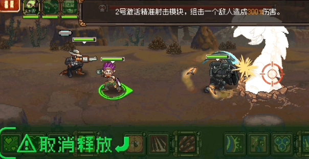 当援助角色的冷却时间结束后,点击其头像就能释放援助技能,该技能可作用于随机敌人或指定敌人。