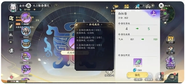 分解金丹装备能获取强化石,可逐步打造出共鸣效果。在心法参悟上,消耗龙玉购买道具来刷新词条,再用千机令兑换碎片进行升阶解锁。