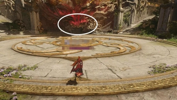 2. 于三个红圈之中寻得【赤金羽*3】,随后继续朝里行进。