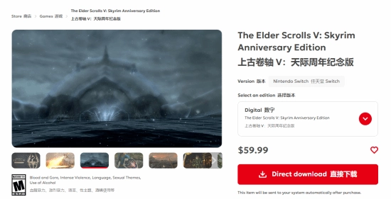 尽管优化表现不尽如人意,B社在定价上却显得相当自信。Switch 2版本的《上古卷轴5》周年纪念版标价59.99美元,换算成人民币大约是423.81元。即便你已经拥有原版的Switch游戏,想要升级到这个版本也得支付19.99美元的费用,约合人民币141.22元。