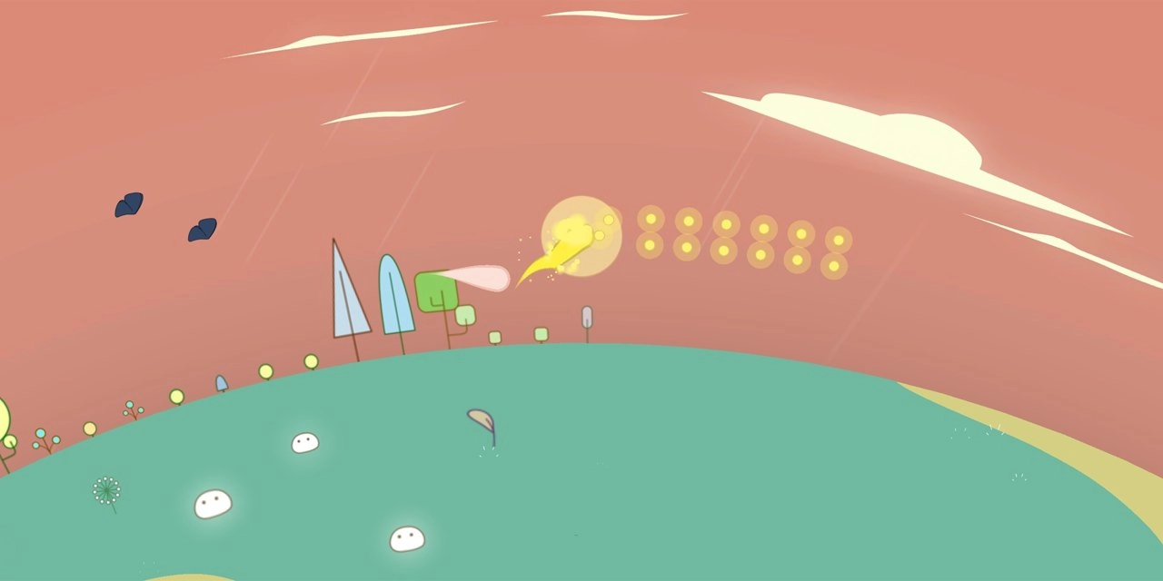 游戏的玩法简洁却蕴含深意。玩家只需轻点屏幕就能让光团跳跃,长按屏幕则能让它飞行。光团飞行时会自动播撒种子,让脚下的土地生长出花草树木。与此同时,玩家还需要收集空中漂浮的“光源”来补充能量,这些光源有的明亮温暖,有的则黯淡无光。如果被遗弃的“光源”黑化变成“黑色光源”,它们会紧紧追逐光团,一旦被追上,游戏就会结束。