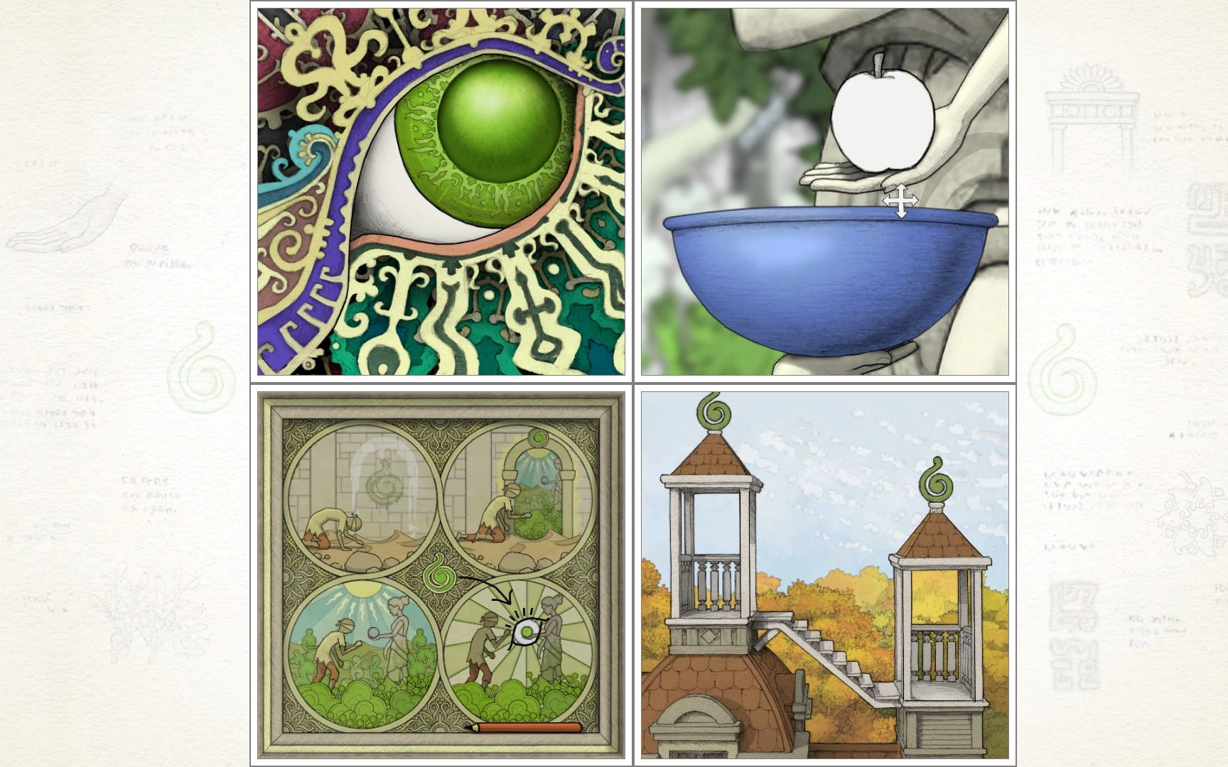 《画中世界》(Gorogoa)巧妙融合了高雅艺术与大众娱乐,不必像用显微镜般细致观察,却能凭借独特的创意和视觉奇景,带领玩家感受艺术的核心魅力。在这个游戏里,你会进入一个由各种画作组成的奇妙天地,需要仔细观察,找出这些画作之间的内在关联——或许是细微的线条连接,或许是图形之间的相互呼应。