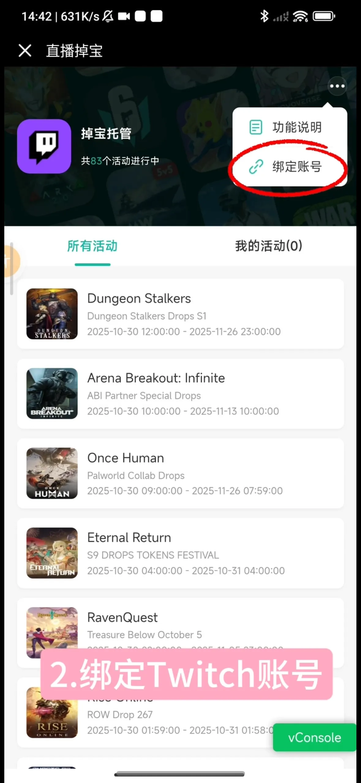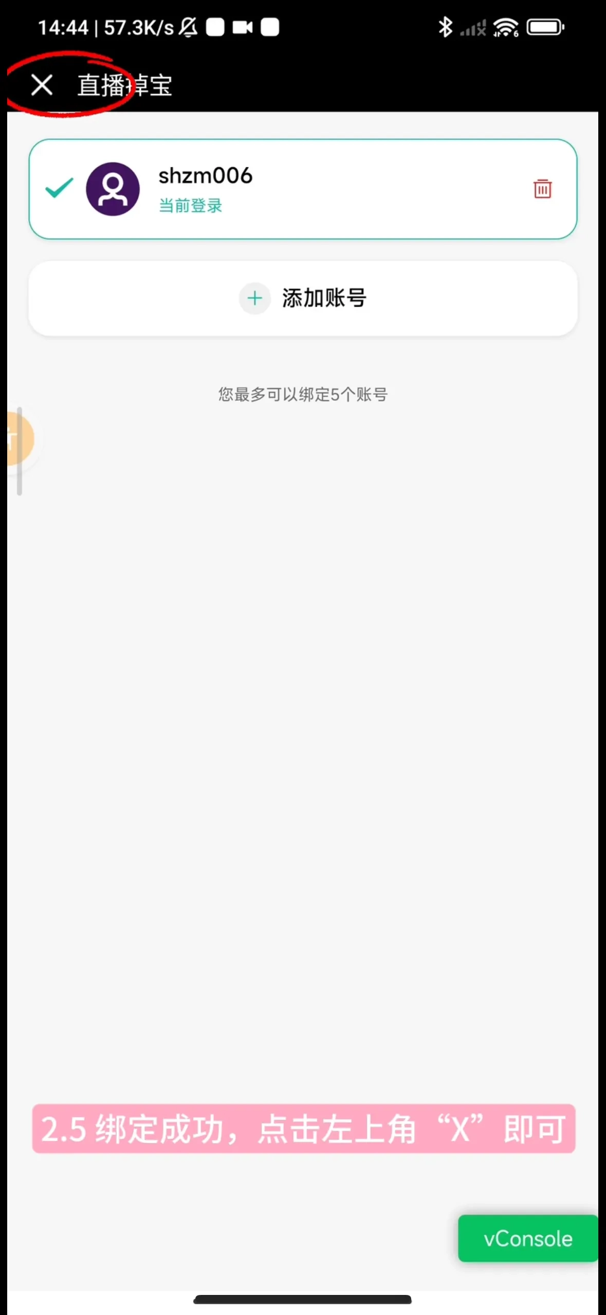 7. 成功绑定Twitch账号后,点击左上角的“X”按钮进行托管操作。