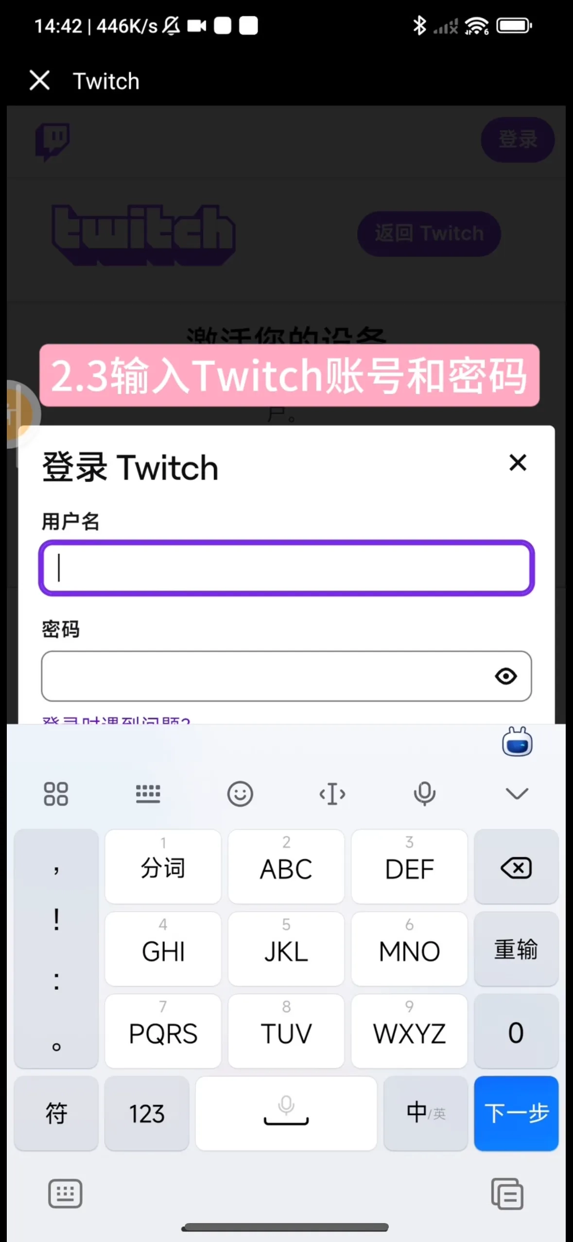 5. 输入Twitch的账号与密码,完成该账号的登录操作