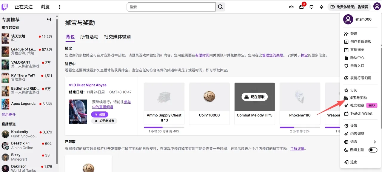1. 启动应用程序,点击“掉宝托管”选项,进入twitch掉宝托管页面